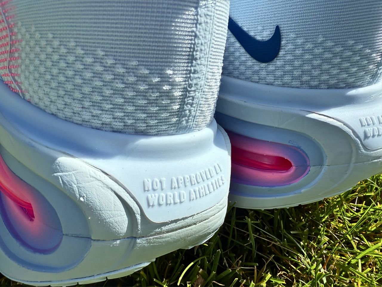 Personally, I love that they even called out on the heel this is not a shoe approved by the World Athletic Association. Meaning if you were to win a race in these it wouldn’t count…but they are not a race shoe, so it’s absolutely tongue in cheek and I’m here for it.